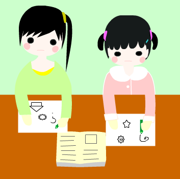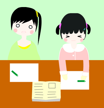 ぼつ絵 【勉強をあきらめて落書きに走る二人】